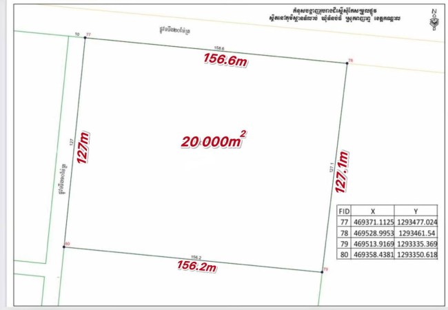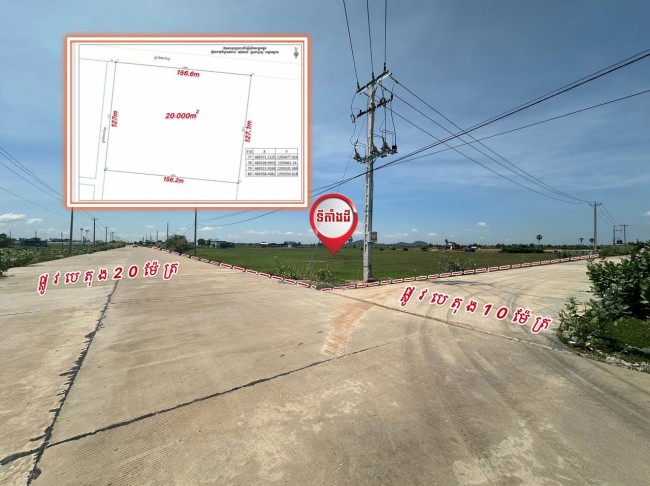 ➡️ ទំហំដីសរុប៖ 20000 ម៉ែត្រការ៉េ ឬ 2 ហិកតា (ប្លង់រឹង)