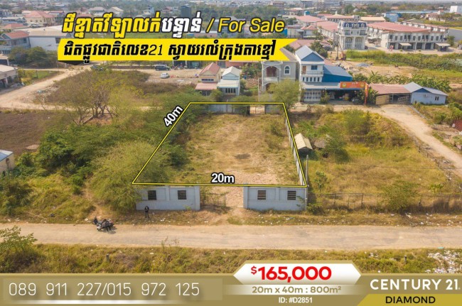 👉ទីតំងល្អ ស្ថិតនៅក្បែរផ្លូវជាតិលេខ២១ ជិតវិទ្យាស្ថានភូមិភាគតេជោសែនក្រុងតាខ្មៅ ជាតំបន់លំនៅដ្ឋាន វិឡាធំៗ។