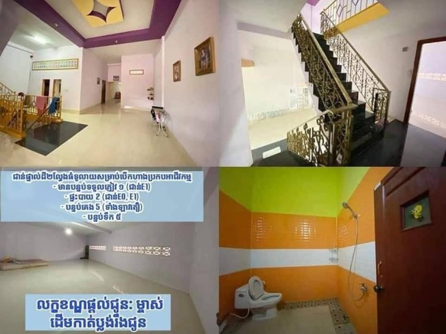 – ជាន់ផ្ទាល់ដី២ល្វែងធំទូលាយសម្រាប់បើកហាងប្រកបអាជីវកម្ម