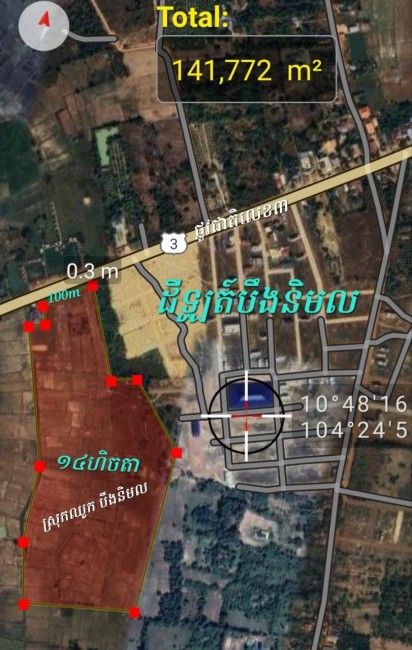 + ក្បាលដី 100m ជាប់ផ្លូវជាតិលេខ៣