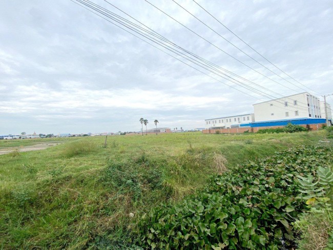 ដីរាងអក្សរអិល (L) ជាប្រភេទដីស្រែ ផ្លូវមុខក្រោយ ក្បាល100m ជាប់ផ្លូវបេតុងរដ្ឋ8ម៉ែត្រ មុខរោងចក្រ និងបុរី SP Resident 3.