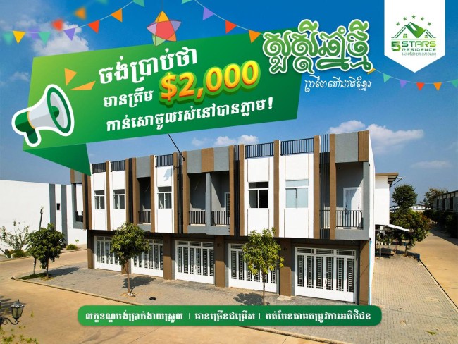 ✅ កក់មុន 2,000$ កាន់សោផ្ទះចូលរស់នៅភ្លាម