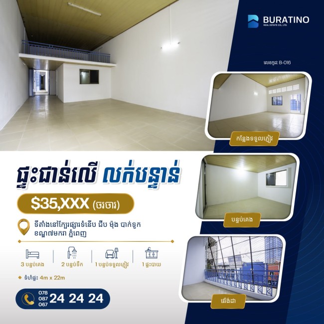 #upperfloorhouse #PhnomPenh #Cambodia #investment #realestate #buratinorealestate #Buratino #RealEstate #HouseForSale #PropertyForSale #codeb016