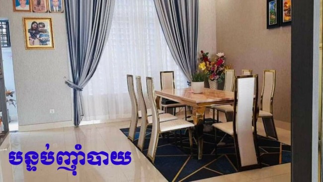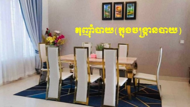 👉មានបន្ទប់គេង ៤, បន្ទប់ទឹក ៥, បន្ទប់ទទួលភ្ញៀវមួយនិងចង្រ្កានបាយធំទូលាយ