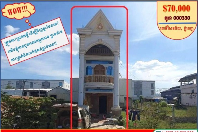 ផ្ទះលក់បញ្ចុះតម្លៃពិសេស $10,000 ស្ថិតនៅ សង្កាត់ភ្លើងឆេះរទេៈ ខណ្ឌពោធិ៍សែនជ័យ