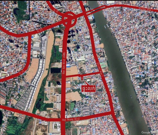 (800m ពីស្បានអាកាស់ក្បាលថ្នល់ និង 200m ពីផ្លូវ 60M )