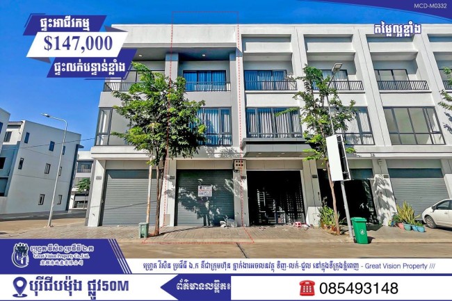 💥💥ផ្ទះអាជីវកម្ម សម្រាប់លក់បន្ទាន់ នៅក្នុងបុរី ជីបម៉ុងផ្លូវព្រៃសរ / Shop House for sale at Borey Chipmong 50m Prey sor