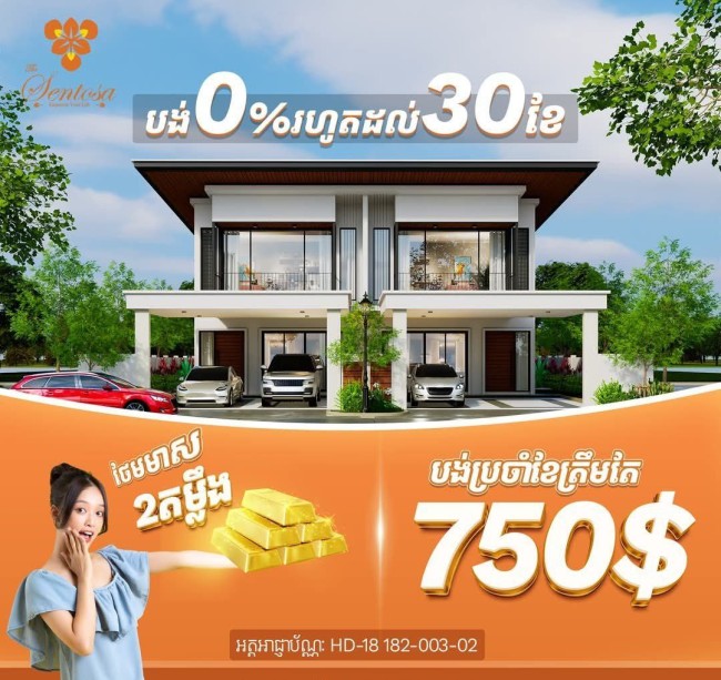 ក្លាយជាម្ចាស់ផ្ទះក្នុងក្តីស្រមៃរបស់លោកអ្នក ជាមួយ វីឡា ភ្លោះ-ប៊ីតម្លៃ$10 មឺនជាង ជាជម្រើសល្អបំផុតសម្រាប់ការរស់នៅប្រចាំថ្ងៃ វាត្រូវបានបំពាក់នៅមុខងារពេញលេញ នៅក្នុងបរិយាកាសធម្មជាតិ សក្តិសមបំផុត សម្រាប់គ្រួសារសម័យថ្មី។