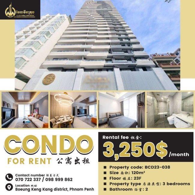 តម្លៃជួល៖ 3,250 ដុល្លារ/ខែ