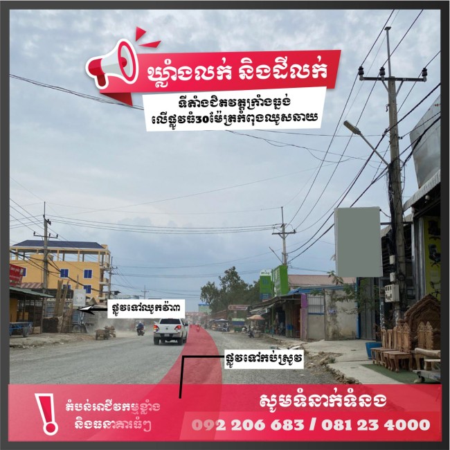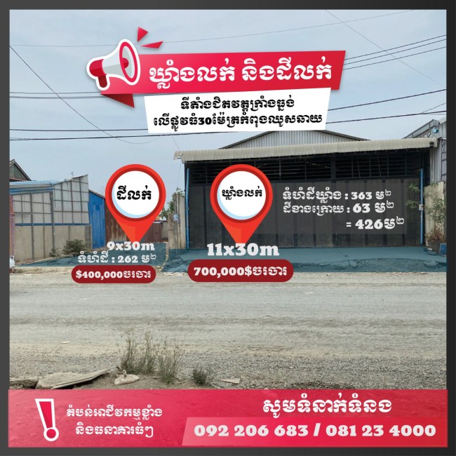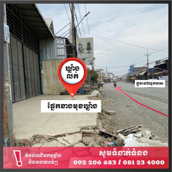 😍ឃ្លាំងលក់ និងដីលក់ជាប់គ្នាតែម្តង លើផ្លូវធំ៣០មែត្រ ផ្លូវខ្វាតខ្វែង