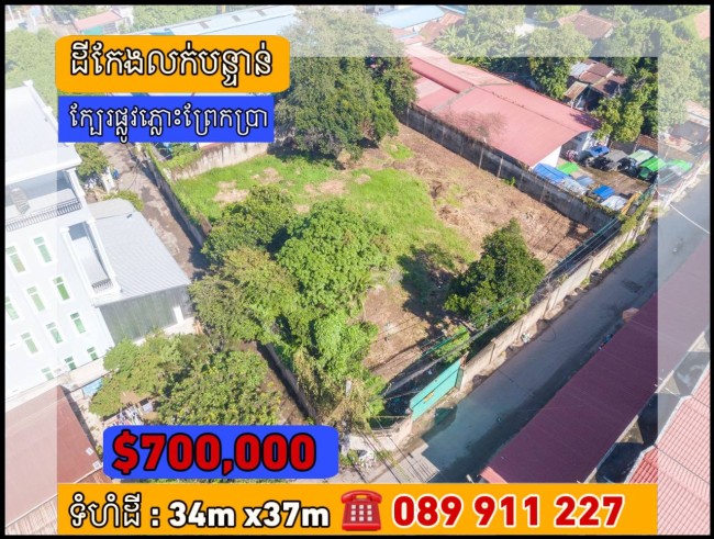 ដីកែងខ្នាតវីឡា លក់បន្ទាន់⚡️នៅក្បែរផ្លូវភ្លោះព្រែកបារាំងជិតវត្តនិរោធ (ID: #D3205)