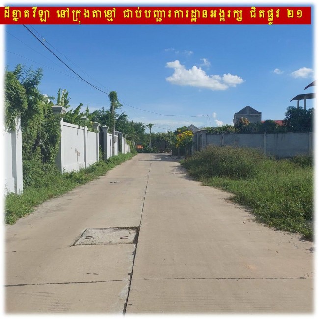»»» ដីខ្នាតវីឡា សម្រាប់លក់ នៅក្រុងតាខ្មៅ ជាប់បញ្ជារការដ្ឋានអង្គរក្ស ជិតផ្លូវ ២១