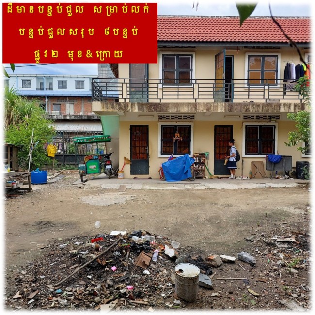 »»» ដីមានបន្ទប់ជួល សម្រាប់លក់ ផ្លូវមុខក្រោយ ជិតផ្លូវ 86K ភូមិចាក់ជ្រូក សំរោងក្រោម