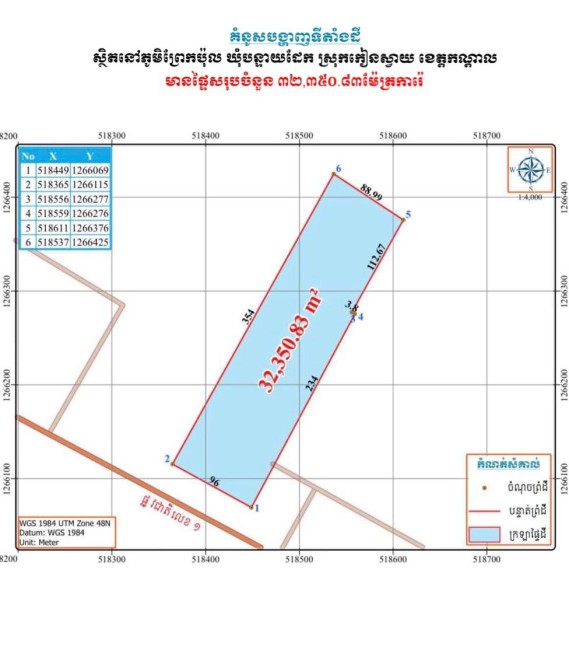 – ទំហំ : 32350.83m² (ប្លង់រឹង)