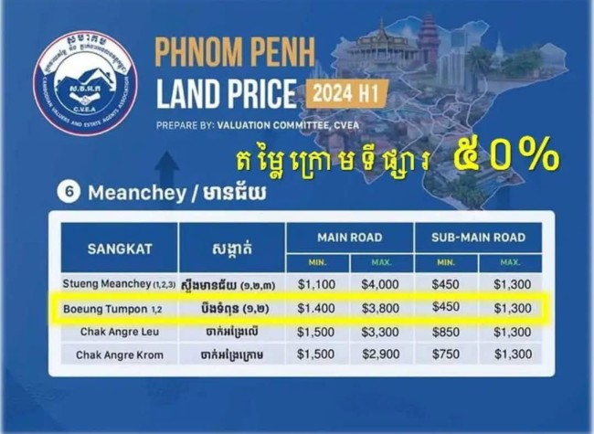 • តម្លៃលក់: 𝟔𝟓𝟎𝐔𝐒𝐃/𝐦²