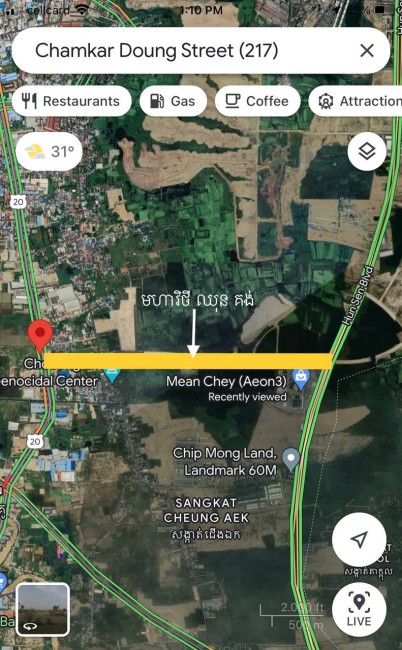 💥ដីលក់នៅលើផ្លូវធំ(ចំការដូង 217) ទល់មុខរោងចក្រស្រាកម្ពុជា ចំងាយ2km ពីផ្សារទំនើបអ៉ីអនមានជ័យតាមមហាវិថីឈុនគង់(ផ្លូវទទឹង50m)ជាប់ខាងជើងផ្សារអ៉ីអន
