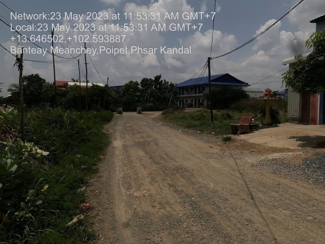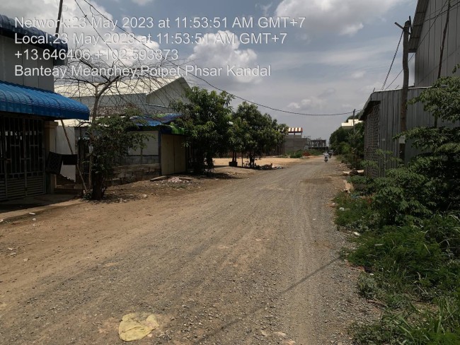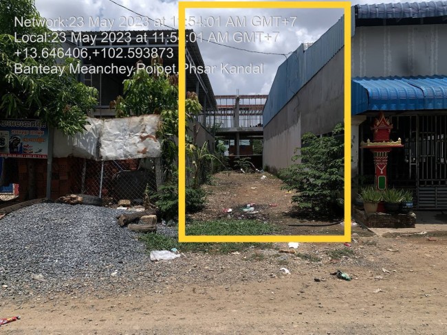 ដីលក់បន្ទាន់តម្លៃក្រោមទីផ្សារនៅជិតរោងចក្រ (SC Wado)រោងចក្រឌីស ចម្ងាយ៥០០ម៉ែត្រ *ទំហំ 4mx21m*តម្លៃ 13,000$ ចរចា *Tell 096 567 7113 /087 630 659 *ទីតាំងនៅភូមិផ្សារកណ្តាល សង្កាត់ផ្សារកណ្តាល ក្រុងប៉ោយប៉េត ខេត្តបន្ទាយមានជ័យ