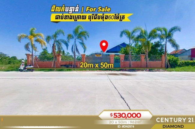 ដីលក់បន្ទាន់⚡️ជាប់ខាងក្រោយ បុរីជីបម៉ុង60ម៉ែត្រ (ID: #DN2974)