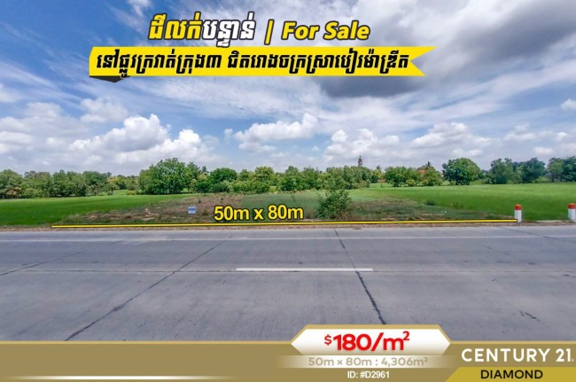 ដីលក់បន្ទាន់⚡️នៅផ្លូវក្រវាត់ក្រុង៣ ជិតរោងចក្រស្រាបៀរម៉ាឌ្រីត (ID:#D2961)