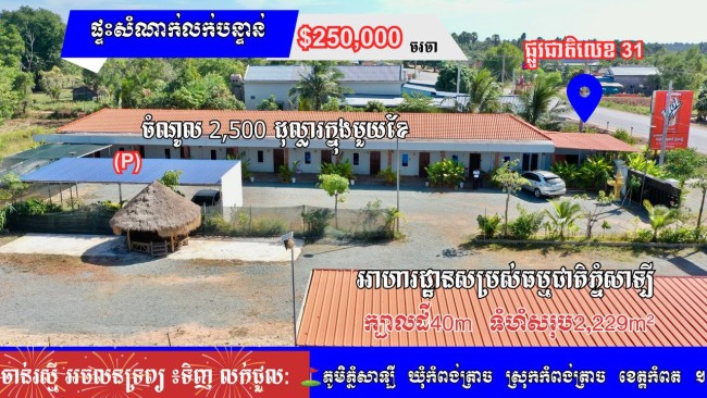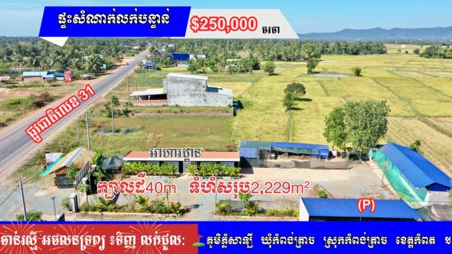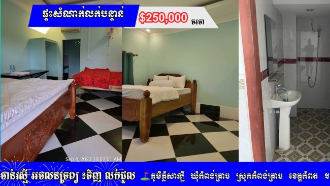 »​ដីលក់បន្ទាន់ លក់ដីថែមផ្ទះសំណាក់ និងភោជនីយដ្ឋាន ស្រុកកំពង់ត្រាច ខេត្តកំពត ( ប្លង់រឹង )