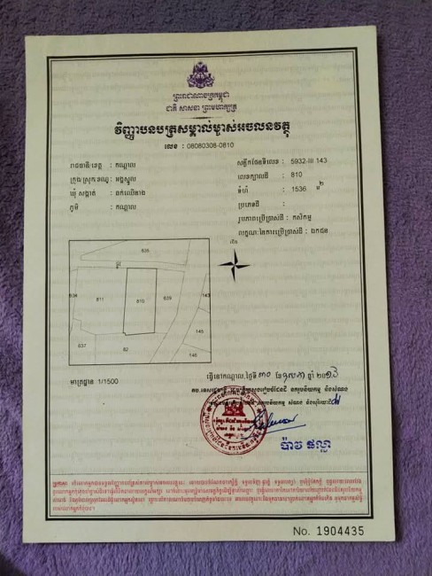 ដីលក់បន្ទាន់ ទំហំដី 3982ម៉ែត្រការ៉េ(ក្បាល 70ម៉ែត្រជម្រៅ 57ម៉ែត្រ) ផ្លូវ៦០ម៉ែត្រ