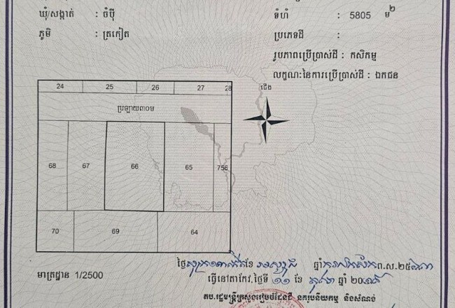 => ទំហំ : 61 x 95 = 5,805m2