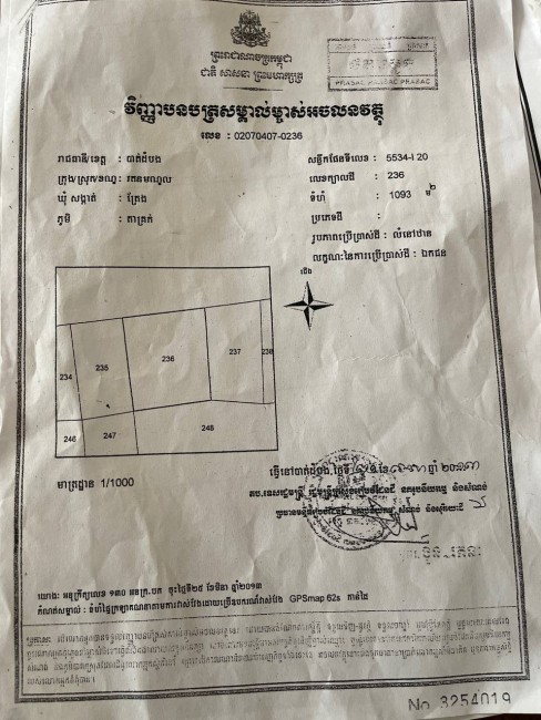 📣ដីចំការទំហំ 45000m2 ក្បាលជាប់ផ្លូវជាតិ 50m ប្លង់រឹង លក់ 3.5$/m2 ចរចា…