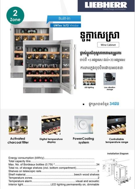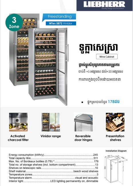 [Liebherr ] ទូក្លាសេស្រា 🍷 រក្សាស្រារបស់អ្នកតាមកម្រិតសីតុណ្ហភាពនីមួយៗ