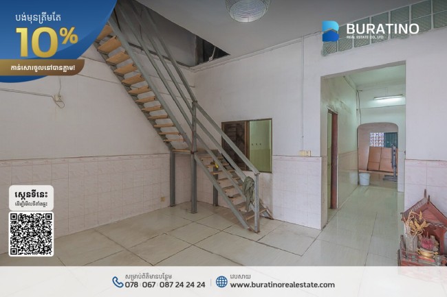 ផ្ទះស្ថិតនៅជិតទីស្ដីការគណៈរដ្ឋមន្ដ្រី ខណ្ឌ៧មករា លោកអ្នកមានតែ 10% អាចចូលនៅភ្លាមៗ ទិញស្នាក់នៅក៏បាន ឬវិនិយោគដើម្បីចំណេញនៅពេលក្រោយក៏បាន ព្រោះជាទីតាំងល្អនៅចំកណ្ដាលទីក្រុង។