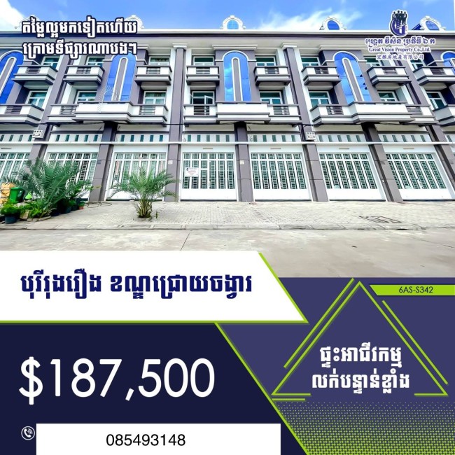 -ទីតាំងស្ថិតក្នុងសង្កាត់ ជ្រោយចង្វារ ដែលមានទីតាំងល្អ តំបន់ OCIC ក្រោយវិមានអាហារ សួនដាយណូស័រ ជិតធនាគារABA ចុះពីស្ពានជ្រោយចង្វារប្រហែល 200m ជិតផ្សារ សាលារៀន