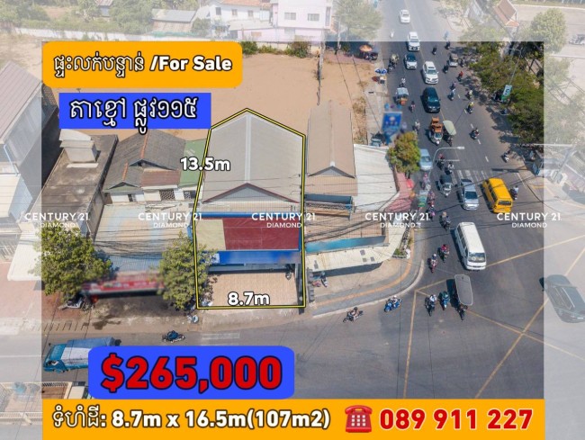 ផ្ទះលក់បន្ទាន់⚡️នៅលើផ្លូវ115 ក្បែរកែងស្តុបព្រែកសំរោង (ID:#D2690)