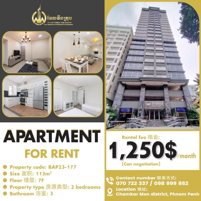 តម្លៃជួល៖ 1,250$/ខែ (អាចចរចារបាន)