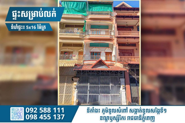 🏠 ទំហំផ្ទះ: 5m x 16m (3 ជាន់ ដំបូលប្រក់ក្បឿង)