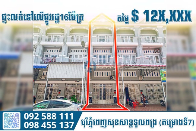 📌 ទីតាំង៖ បុរីភ្នំពេញសុខសាន្តទួលពង្រ (គម្រោងទី7), នៅលើផ្លូវរដ្ឋ 16ម៉ែត្រ
