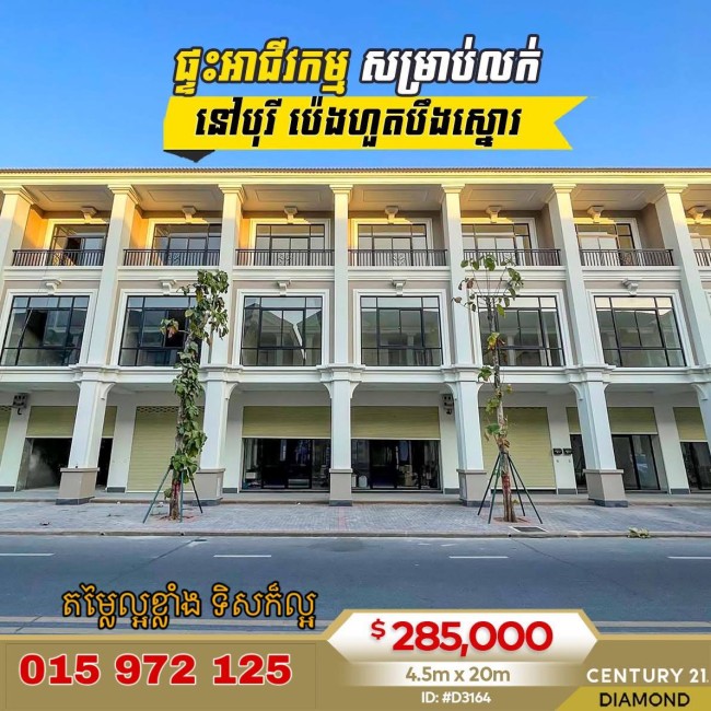 ផ្ទះអាជីវកម្មសម្រាប់លក់⚡️នៅបុរី ប៉េងហួតបឹងស្នោរ តម្លៃក្រោមទីផ្សារ