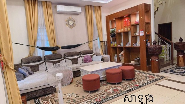 វីឡាភ្លោះលក់បន្ទាន់ ក្នុងបុរីពិភពថ្មីចំការដូង១ដេគ័របំពាក់គ្រឿងសង្ហារឹម