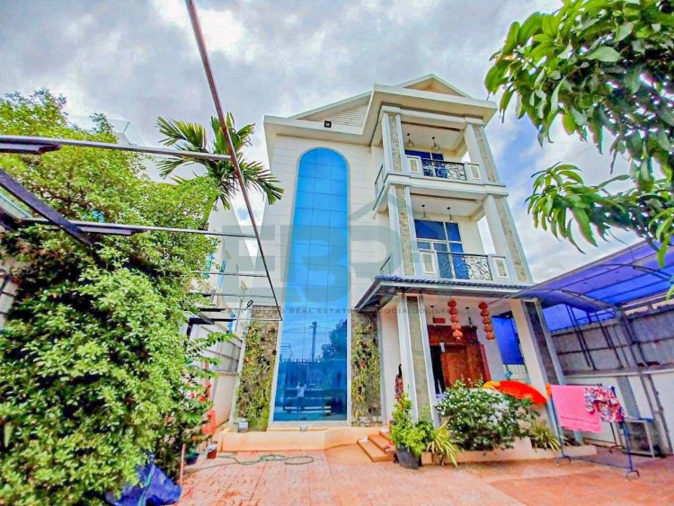 ផ្ទះវីឡាជួលកម្ពស់3ជាន់កណ្តាលក្រុងសៀមរាបតម្លៃ$800/ខែ មាន6បន្ទប់គេង និងបន្ទប់តូច1